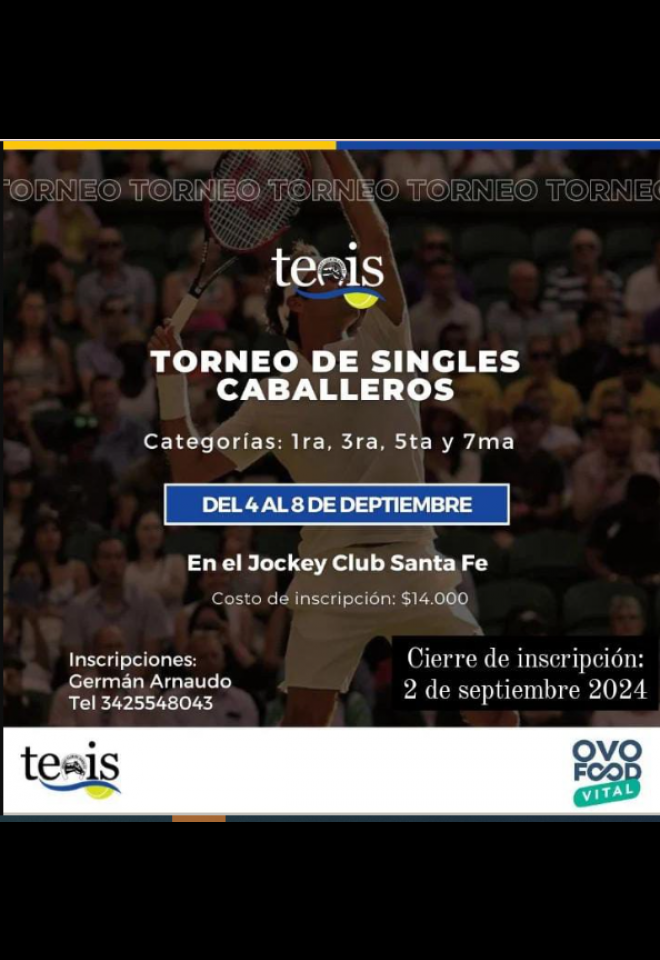 »» Evento: Torneo SINGLE Caballeros »» Localidad: Santa Fe »» Fechas: 04/09/2024 al 08/09/2024